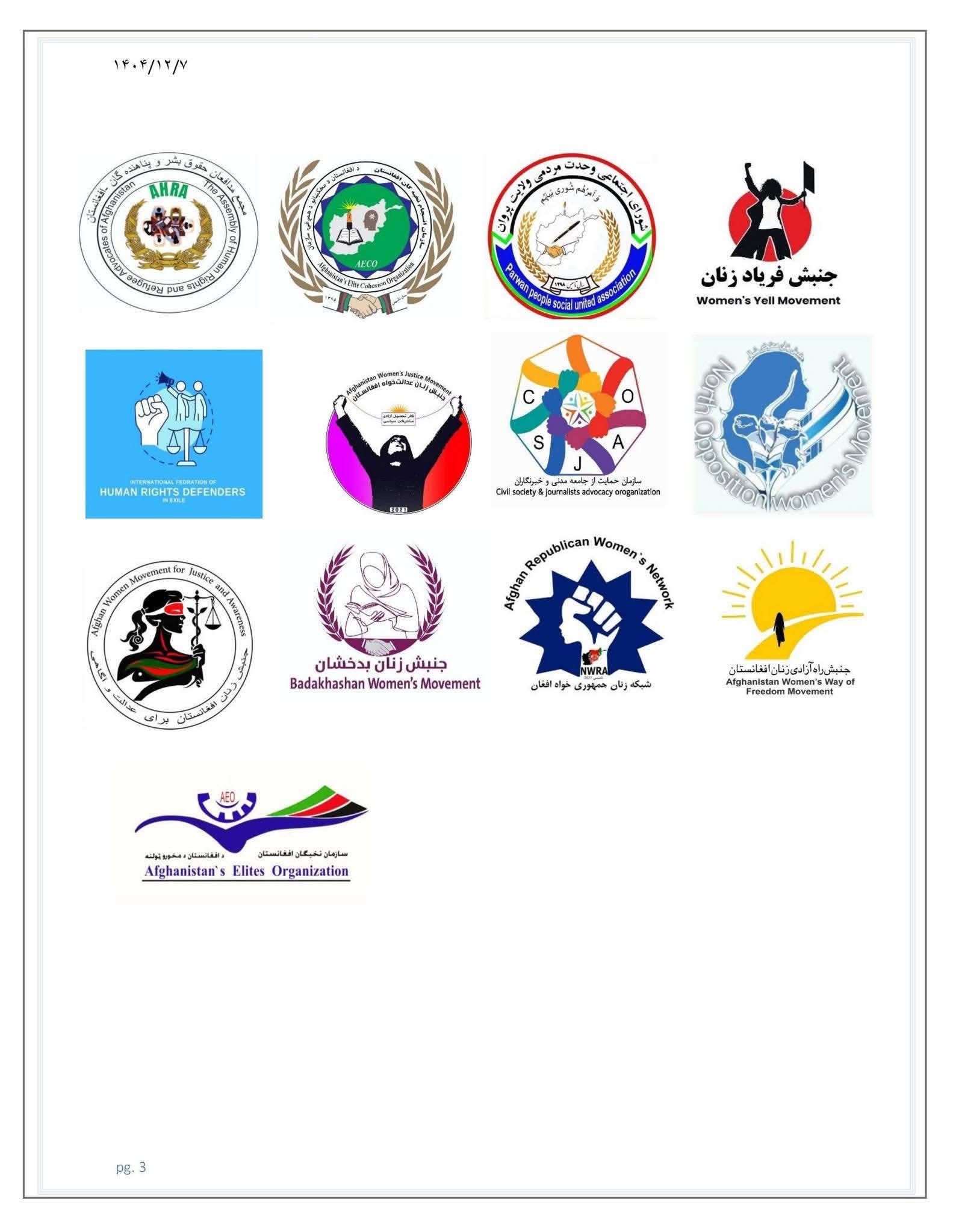 جمع از جنبش های اعتراضی زنان ونهادهای حقوق بشری افغانستان